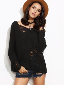 shein_black_drop_shoulder_ripped_sweater